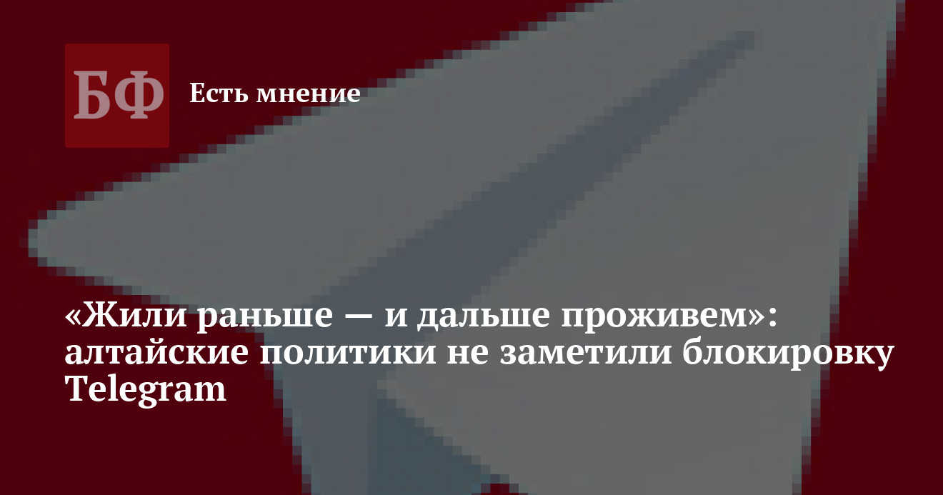 В России несколько дней идет блокирование мессенджера Telegram. Пытаясь предотвратить обход блокировки, Роскомнадзор закрывает доступ к миллионам IP-адресов, которые используют другие сайты и сервисы, в том числе достаточно популярные. Создатель Telegram Павел Дуров анонсировал «Цифровое Сопротивление» — децентрализованное движение в защиту цифровых свобод и прогресса, главная идея которого сейчас — поддержка мессенджера. Однако она ему, похоже, не требуется: в то время, как рунет лихорадит, Telegram у большинства пользователей работает с незначительными перебоями даже без использования разных способов обхода блокировок. Алтайские политики, пользующиеся мессенджером, рассказали ИА «Банкфакс» о своем отношении к проблеме, а также о том, почувствовали ли они, что Telegram в России уже несколько дней официально не работает.