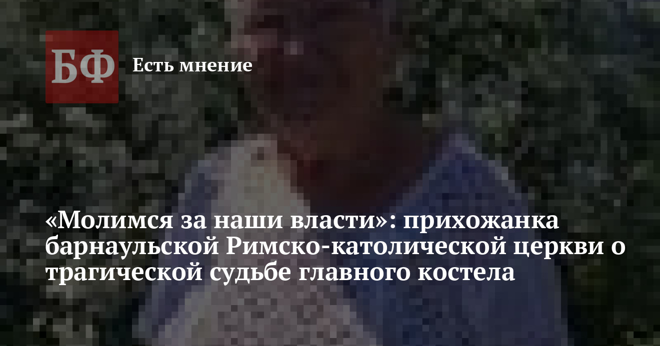 Могу сказать одно — все прихожане местной католической церкви выступают за возвращение здания. Еще ни один из них не сказал: «Зачем нам костел на „красной линии“? Ведь есть же еще второй». Все прекрасно понимают, что приходов у православных и у других конфессий в городе много — по два и по три, в том числе те, которые снимают в аренду или строят на свои деньги. Почему бы не сделать два костела на такой большой Алтайский край? Ведь на территории региона осталось большое количество немцев, эстонцев, литовцев и латышей — все они католики и все бы приходили и молились. Это, конечно, мое мнение, но я здесь живу уже 50 с лишним лет, поэтому я знаю ситуацию и придерживаюсь этой позиции.