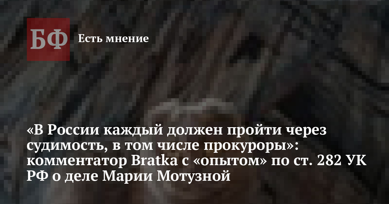 title=""В России каждый должен пройти через судимость, в том числе прокуроры": комментатор Bratka с «опытом» по ст. 282 УК РФ о деле Марии Мотузной"