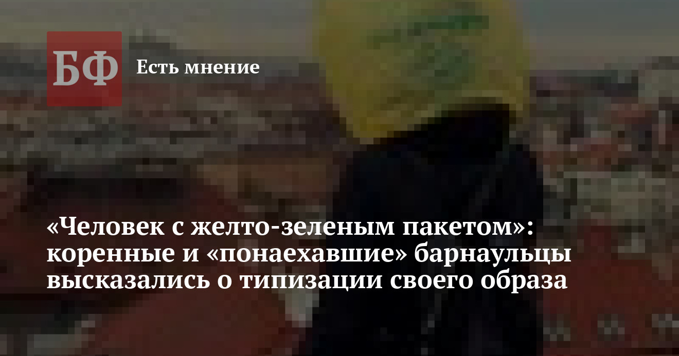 Если же говорить о каких-то типичных чертах, то я предпочту от этой возможности отказаться. Все равно создать образ именно «типичного барнаульца» не удастся. Либо это просто будет человек с желто-зеленым пакетом.