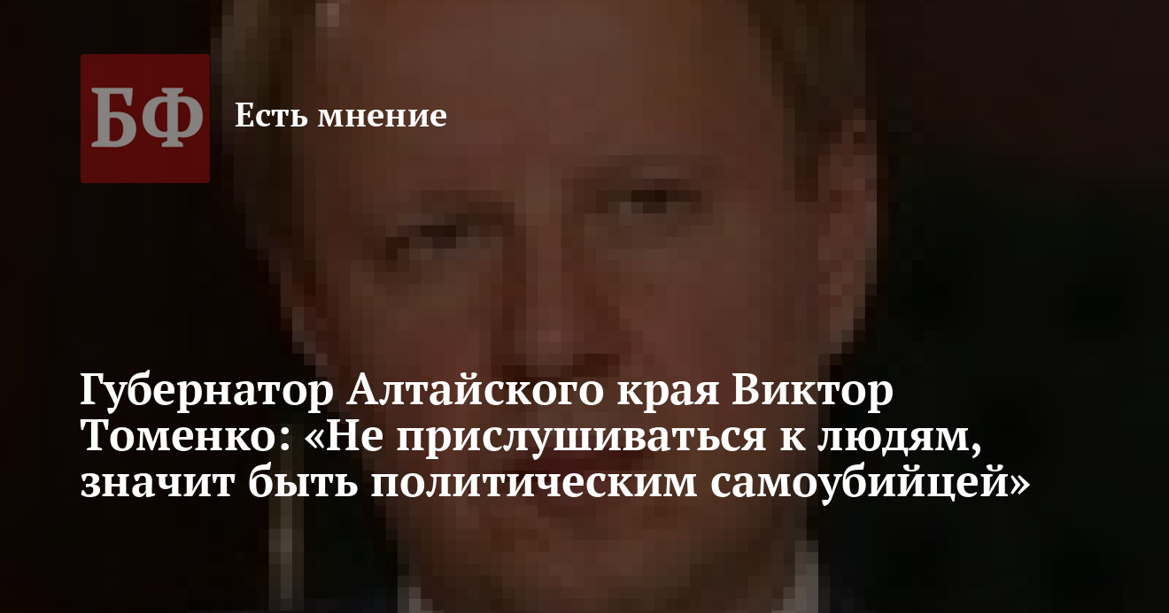 Губернатор Алтайского края Виктор Томенко: «Не прислушиваться к людям<span style=, значит быть политическим самоубийцей"" title="Губернатор Алтайского края Виктор Томенко: «Не прислушиваться к людям, значит быть политическим самоубийцей»" width="200″ height="200">