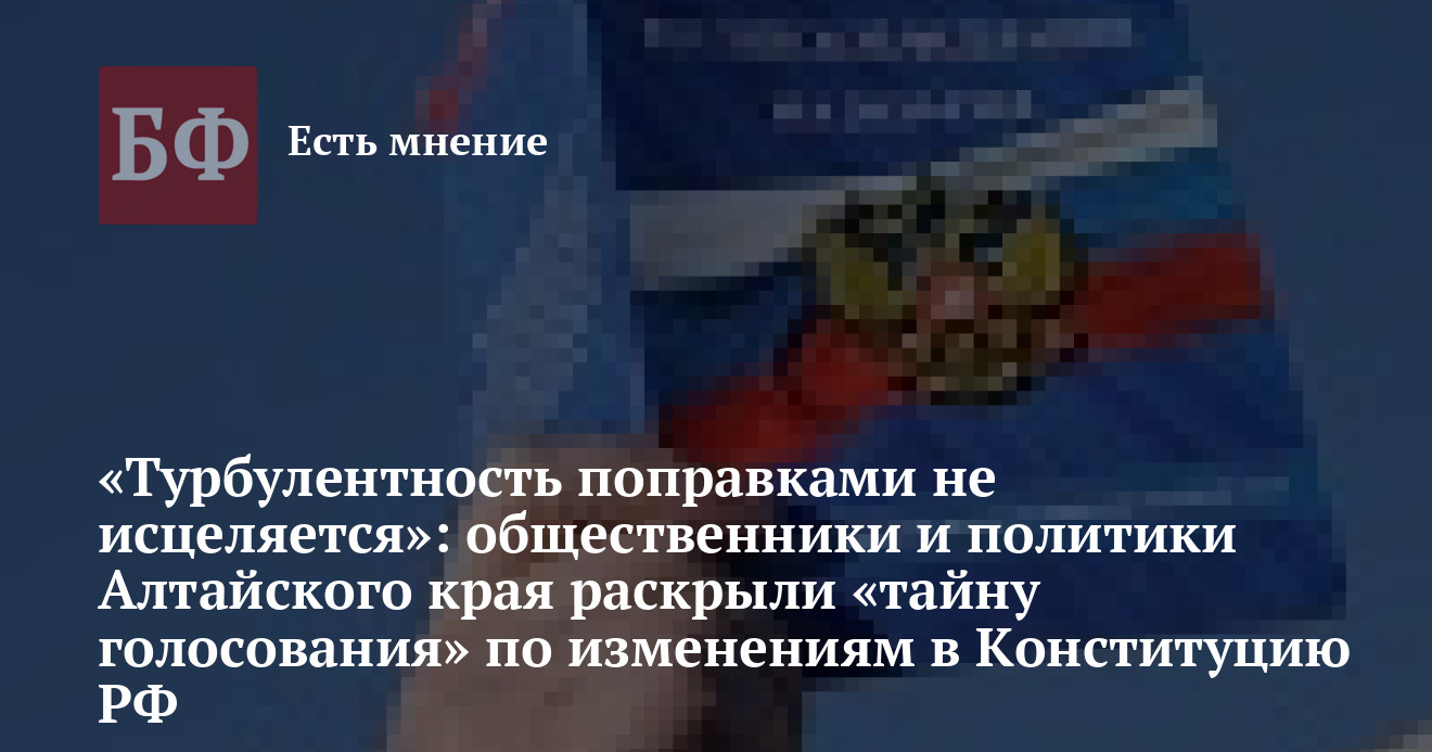 С 25 июня по 1 июля 2020 года жители Алтайского края, как и всей страны, могли принять участие в голосовании по поправкам к Конституции РФ. После подсчета голосов выяснилось, что к процедуре проявили интерес чуть менее 50% избирателей региона, из которых 645 603 (71,91%) поддерживают поправки. «Против» проголосовало 241 132 человека (26,86%). Согласно результатам в разрезе муниципалитетов, наименьшую поддержку поправкам выразили жители городов, а вот безусловным лидером протестного голосования, что нехарактерно, стал ЗАТО Сибирский, где 46,84% проголосовали «против». Однако многие не увидели проблемы в столь низкой явке. Так, руководитель регисполкома ЕР в Алтайском крае Денис Голобородько, к примеру, списал это на летний отдых граждан. Корреспонденты ИА «Банкфакс» попытались выяснить у общественников и политиков региона, почему граждане на самом деле неохотно шли на участки, насколько их самих устроила организация голосования, а также когда жителям края и России в целом стоит ожидать обещанного эффекта от этих поправок.
