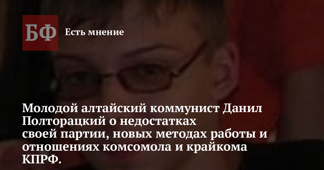 Молодой алтайский коммунист Данил Полторацкий о недостатках