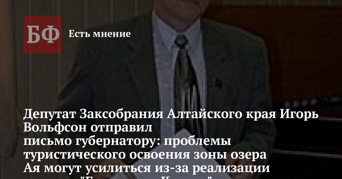 Депутат Заксобрания Алтайского края Игорь Вольфсон отправил