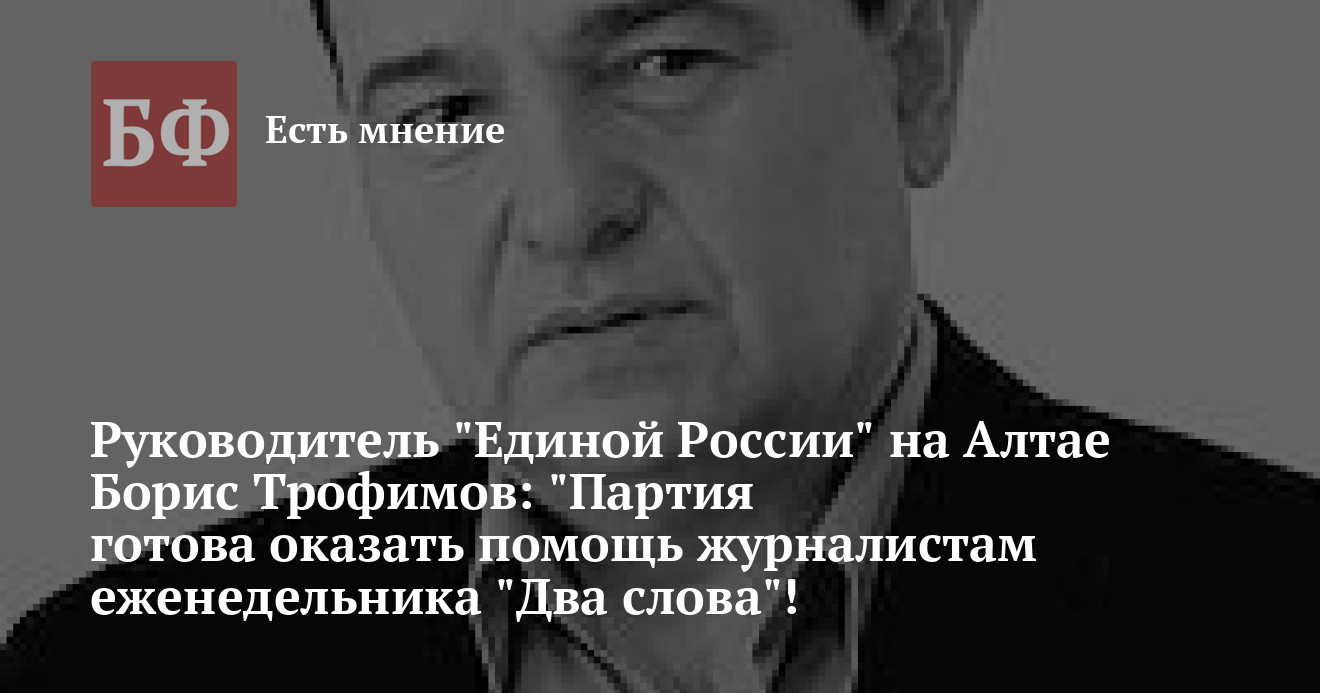 — Ситуация с журналистами газеты «Два слова» — это своеобразный упрек в адрес «Единой России», так как собственник ООО «Алтинформбюро» Сергей Хачатурян является членом партии. К тому же, при ликвидации медиа-холдинга он поступил достаточно некрасиво, и, возможно, мог нарушить трудовое законодательство. Поэтому, если журналисты обратятся к нам за помощью, то мы готовы их выслушать и оказать им бесплатную юридическую помощь, начиная от простых консультаций и заканчивая защитой их интересов в суде!