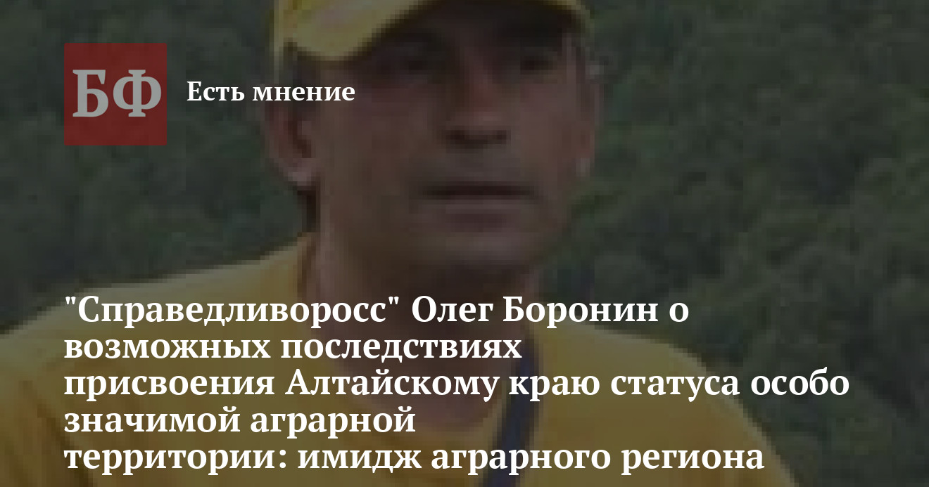 — У меня есть определенные сомнения в том, что обсуждаемый нынче законопроект и присвоение Алтайскому краю статуса особо значимой аграрной территории принесет больше пользы, чем вреда. Закрепление за регионом «особого аграрного статуса» может иметь и «оборотную сторону».