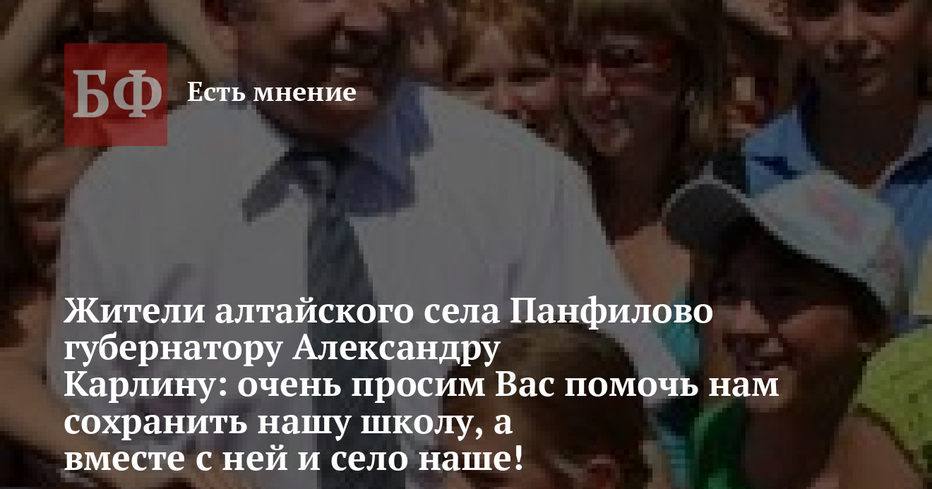 — Мы, жители села Панфилово Калманского района, обращаемся к Вам за помощью. Дело в том, что в нашем селе сложилась очень тяжелая, даже опасная для существования нашего села обстановка: в этом году нашу основную школу администрация района решила реорганизовать до начальной.