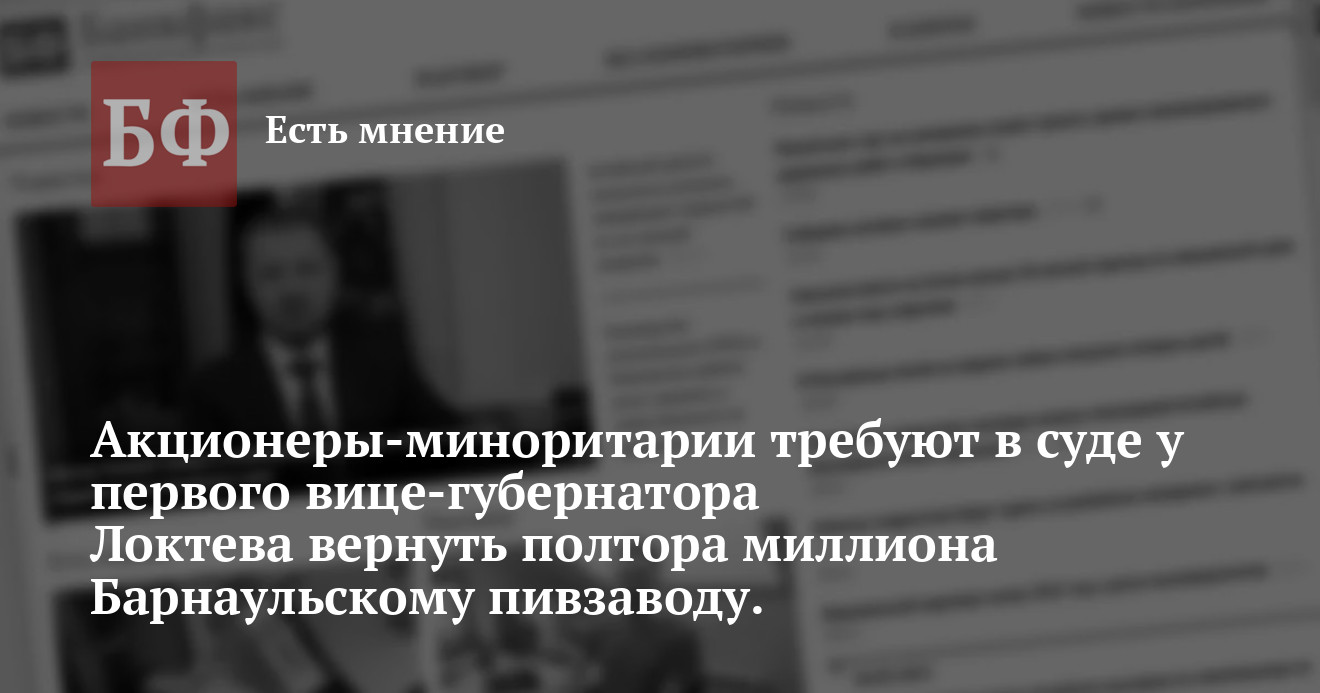 Алтайского края Сергея Локтева. Истцы требуют взыскать с высокопоставленного чиновника в пользу ОАО «Барнаульский пивоваренный