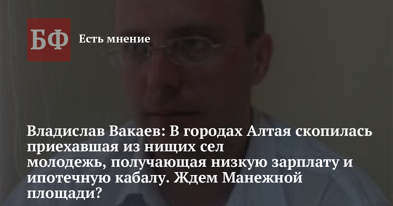 Владислав Вакаев: В городах Алтая скопилась приехавшая из нищих сел