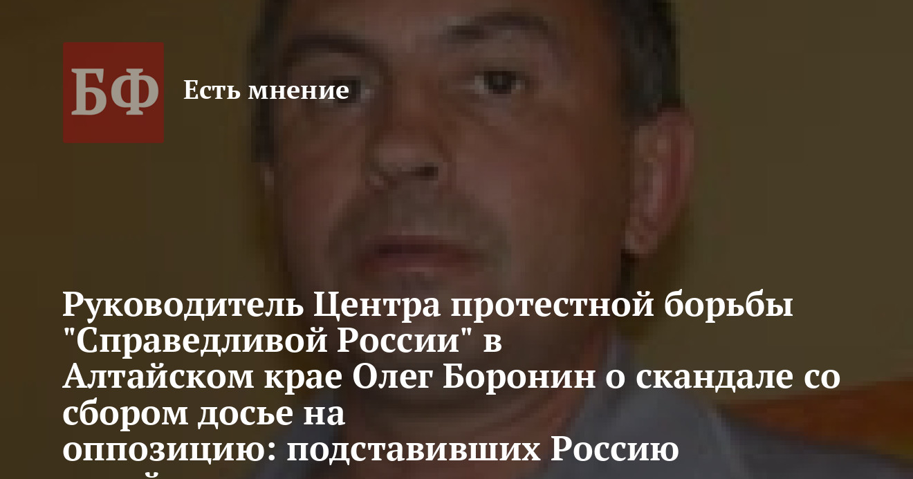 Руководитель Центра протестной борьбы «Справедливой России» в Алтайском крае Олег Боронин о скандале со сбором досье на оппозицию: подставивших Россию алтайских чиновников ждет казенно