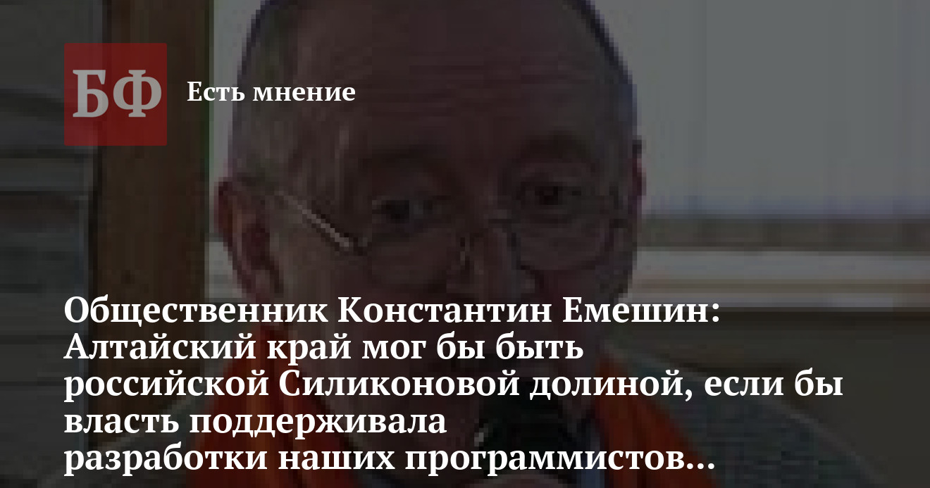 Общественник Константин Емешин: Алтайский край мог бы быть