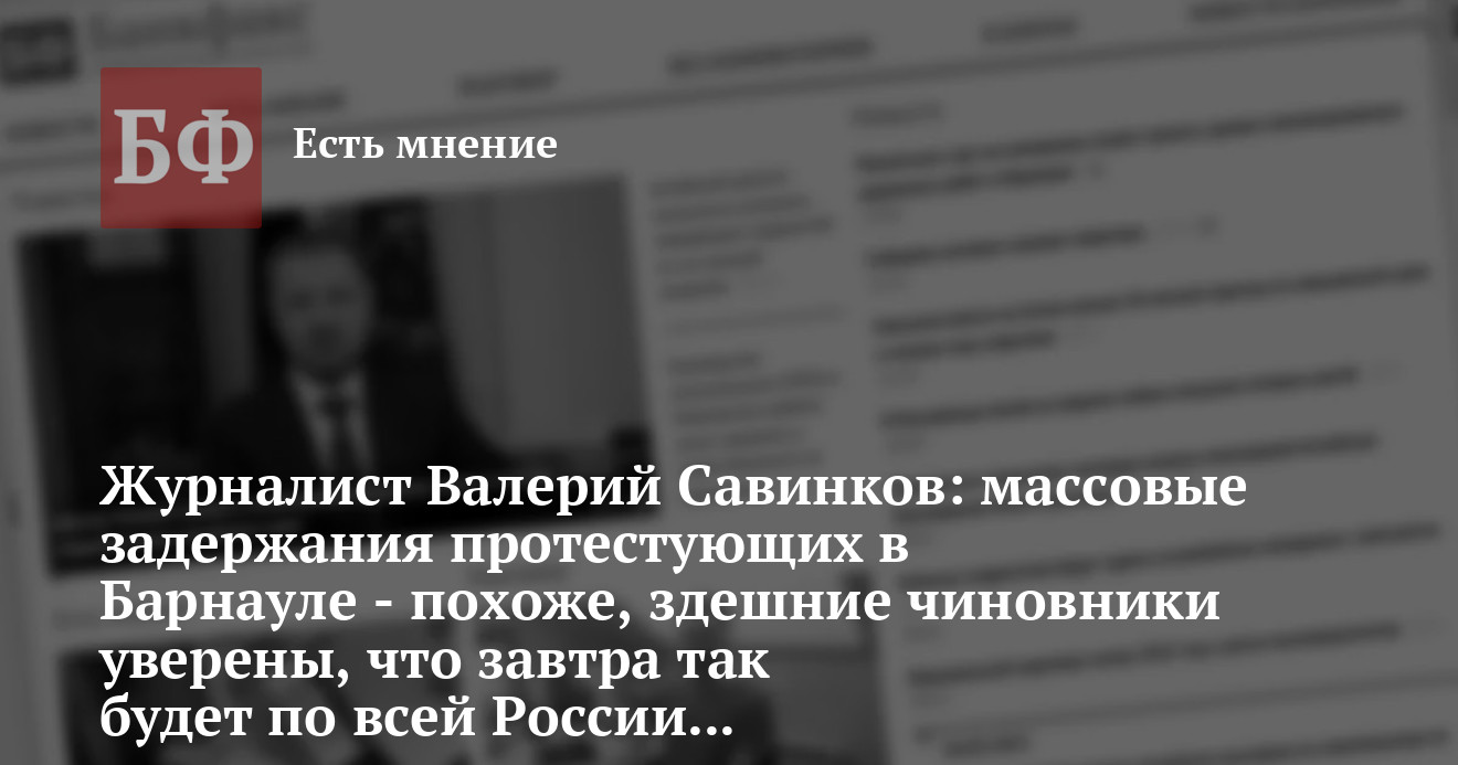 Журналист Валерий Савинков: массовые задержания протестующих в Барнауле — похоже, здешние чиновники уверены, что завтра так будет по всей России…