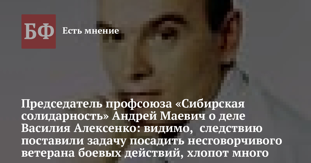 title="Председатель профсоюза «Сибирская солидарность» Андрей Маевич о деле Василия Алексенко: видимо, следствию поставили задачу посадить несговорчивого ветерана боевых действий, хлопот много доставляет"
