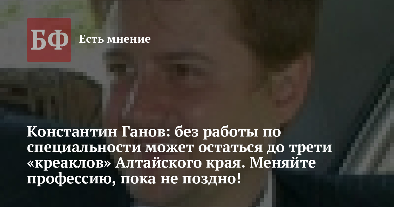title="Константин Ганов: без работы по специальности может остаться до трети «креаклов» Алтайского края. Меняйте профессию, пока не поздно!"
