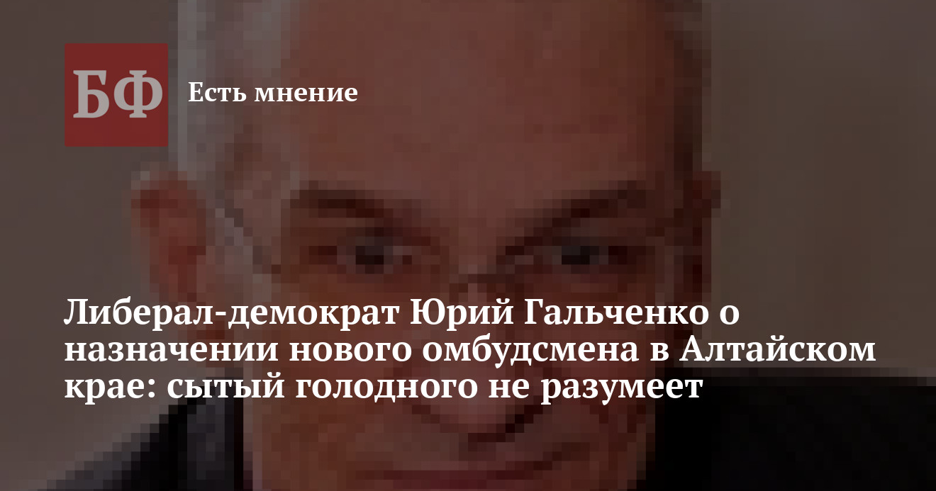 Ближайшие пять лет защищать «униженных и оскорбленных» жителей края будет бывший вице-губернатор Борис Ларин, назначенный 30 мая уполномоченным по правам человека в регионе. Такое решение в ходе последней сессии принято большинством депутатов Алтайского Заксобрания. Среди тех, кто откровенно усомнился в способности высокопоставленного чиновника не номинально пересесть в кресло омбудсмена, а на деле влезть в шкуру правозащитника, был член фракции ЛДПР в АКЗС Юрий Гальченко. Своей позицией по этому поводу после заседания он поделился с ИА «Банкфакс»: