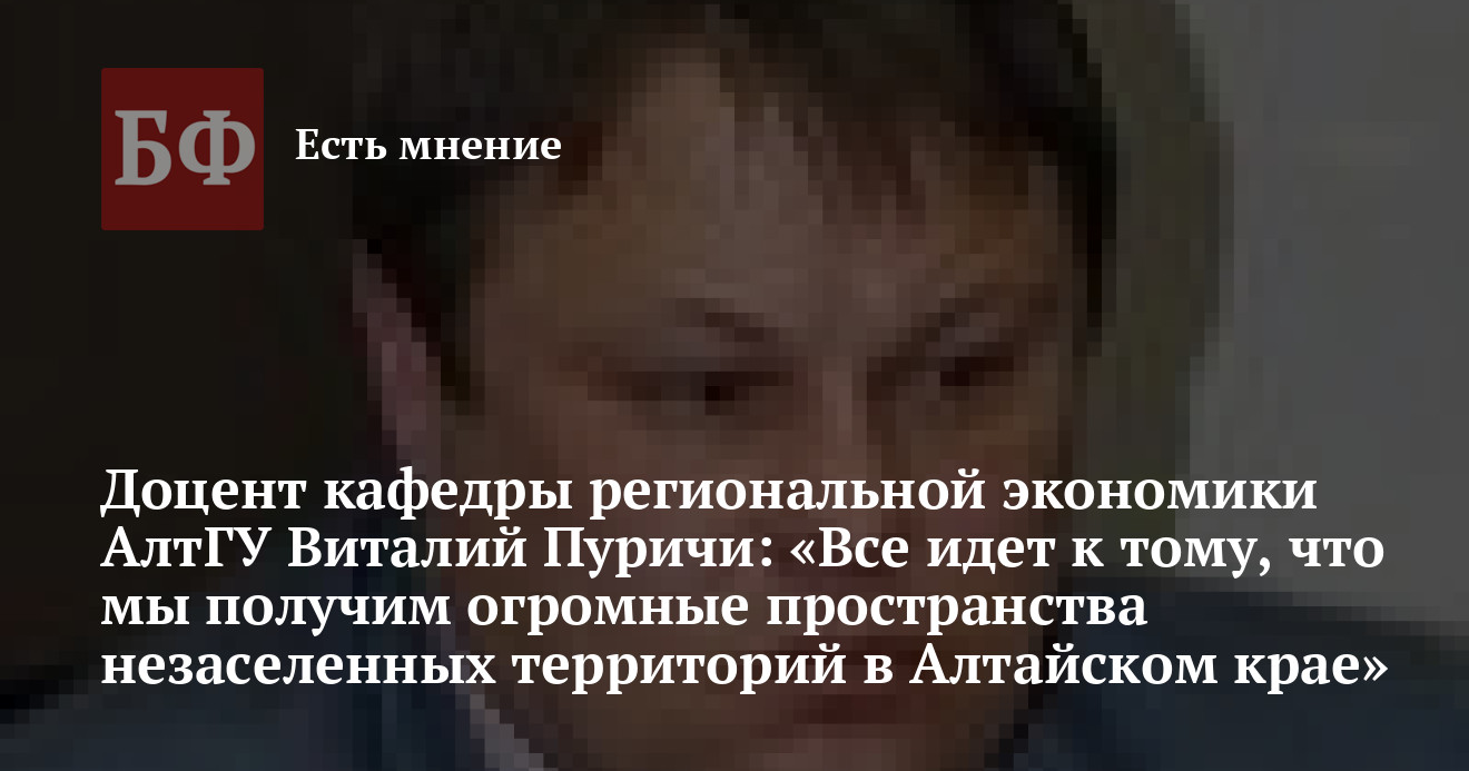 title="Доцент кафедры региональной экономики АлтГУ Виталий Пуричи: «Все идет к тому, что мы получим огромные пространства незаселенных территорий в Алтайском крае»"