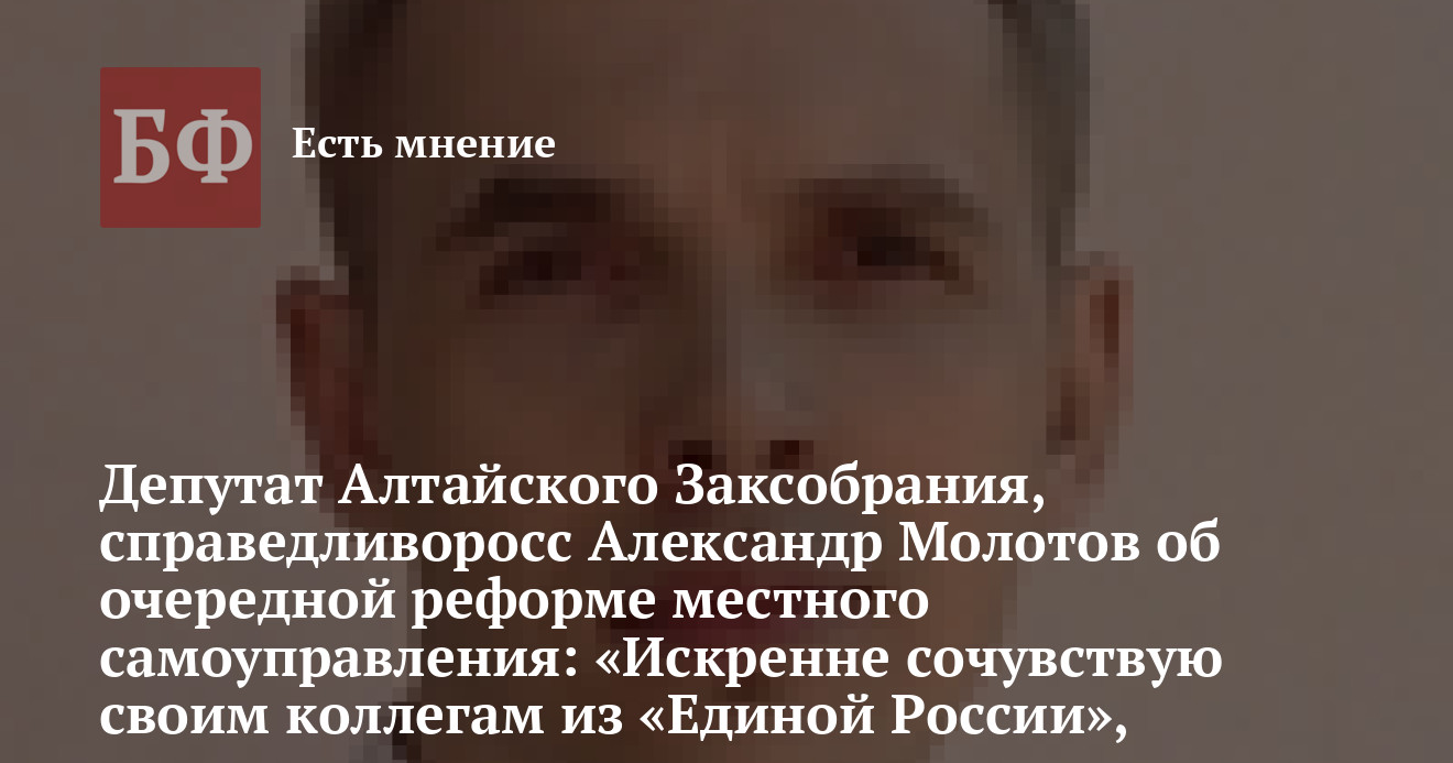 title="Депутат Алтайского Заксобрания, справедливоросс Александр Молотов об очередной реформе местного самоуправления: «Искренне сочувствую своим коллегам из „Единой России“, которым придется за это голосовать»"