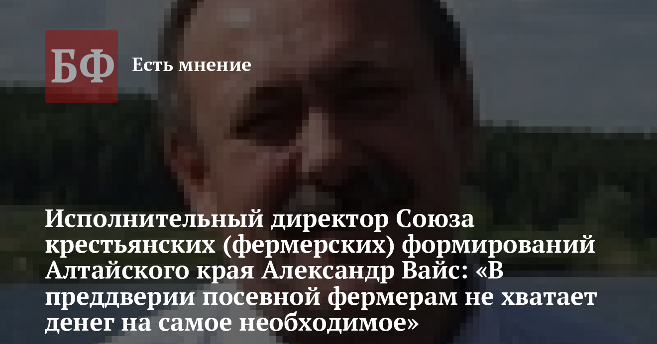 (фермерских) формирований Алтайского края Александр Вайс: «В преддверии посевной фермерам не хватает денег на самое необходимое»"