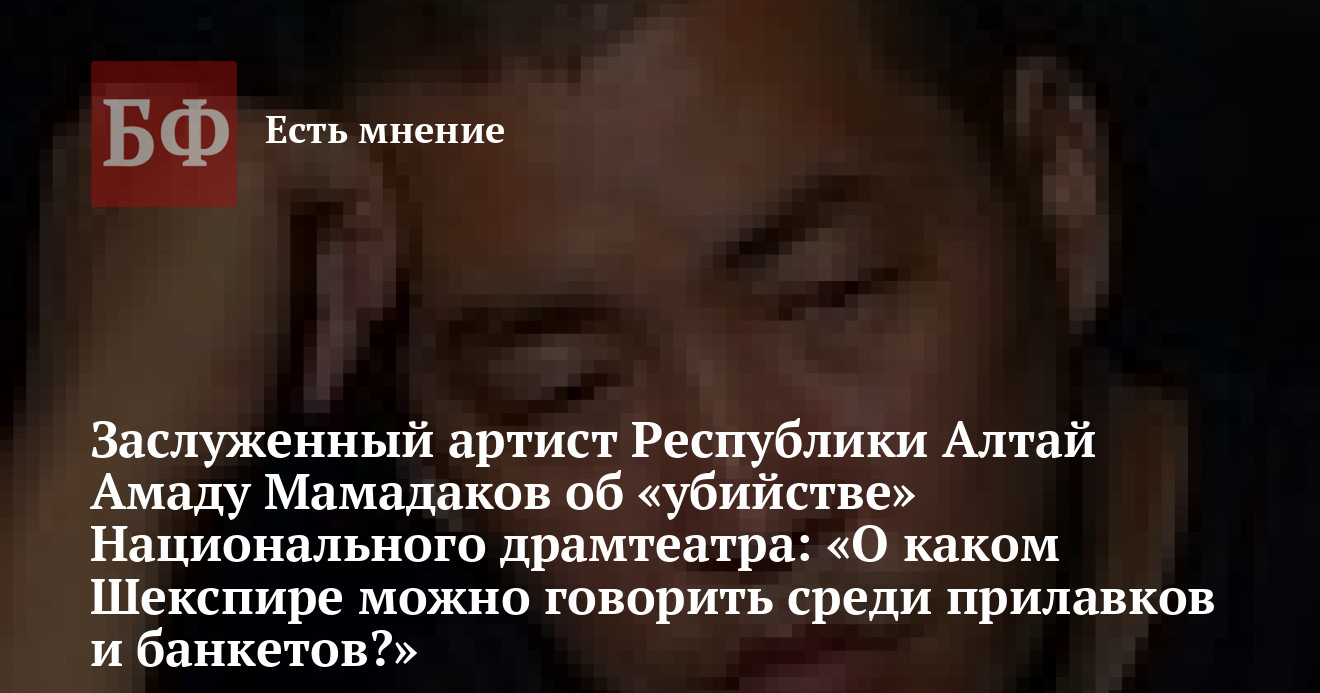 24 апреля министр культуры Республики Алтай Владимир Кончев отправил в отставку художественного руководителя Национального театра Эмму Иришеву. Это событие стало поводом для активного обсуждения статуса «дворца культуры», который, по мнению многих, в последние годы превратился скорее в торговый павильон и место для банкетов. Заслуженный артист Республики Алтай, именитый театральный и киноактер Амаду Мамадаков рассказал ИА «Банкфакс», почему считает происходящие процессы «убийством театра».