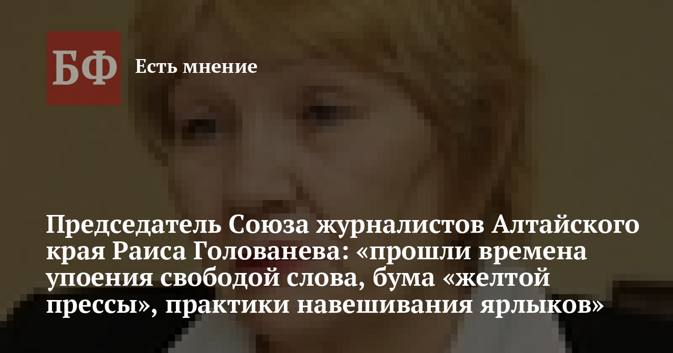 title="Председатель Союза журналистов Алтайского края Раиса Голованева: «прошли времена упоения свободой слова, бума „желтой прессы“, практики навешивания ярлыков»"