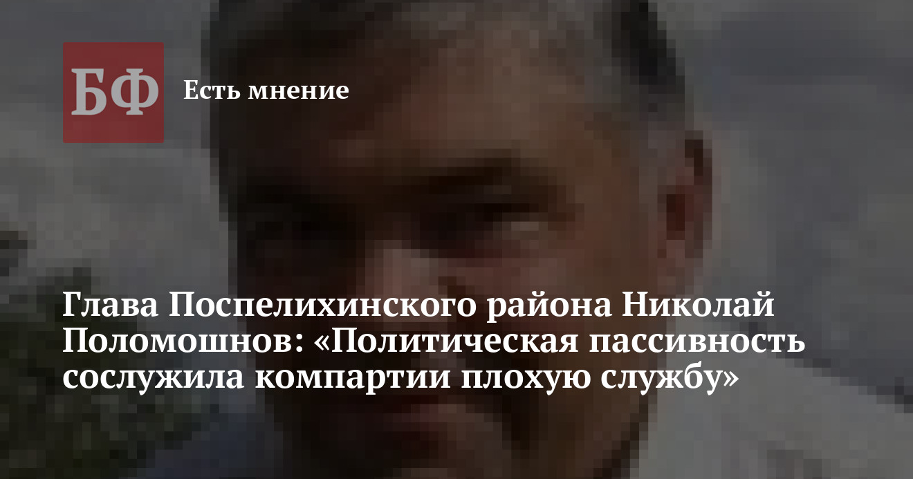 Глава Поспелихинского района, руководитель фракции «Единая Россия» в районном совете депутатов Николай Поломошнов прокомментировал недавнее заявление алтайских коммунистов о возможном бойкоте губернаторских выборов из-за нежелания единороссов снизить «муниципальный фильтр».