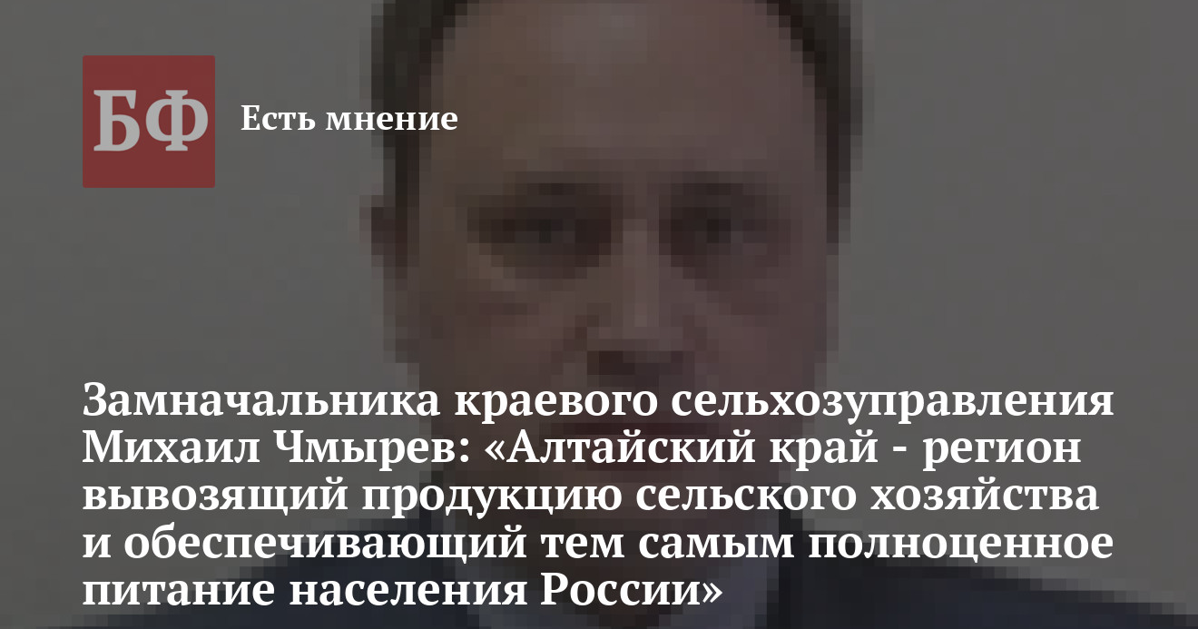 То есть, говорить о том, что край не участвует в продовольственной безопасности не правильно. Алтайский край — один из оплотов продовольственной безопасности России, один из десяти главных аграрных субъектов страны. Губернатор еще в 2008 году озвучил позицию о том, что необходимо принять специальный закон об особых аграрных территориях и о поддержке таких территорий с целью, чтобы они еще больше нарастили объемы производства. И сегодня это на уровне проекта федерального закона в Москве прорабатывается.