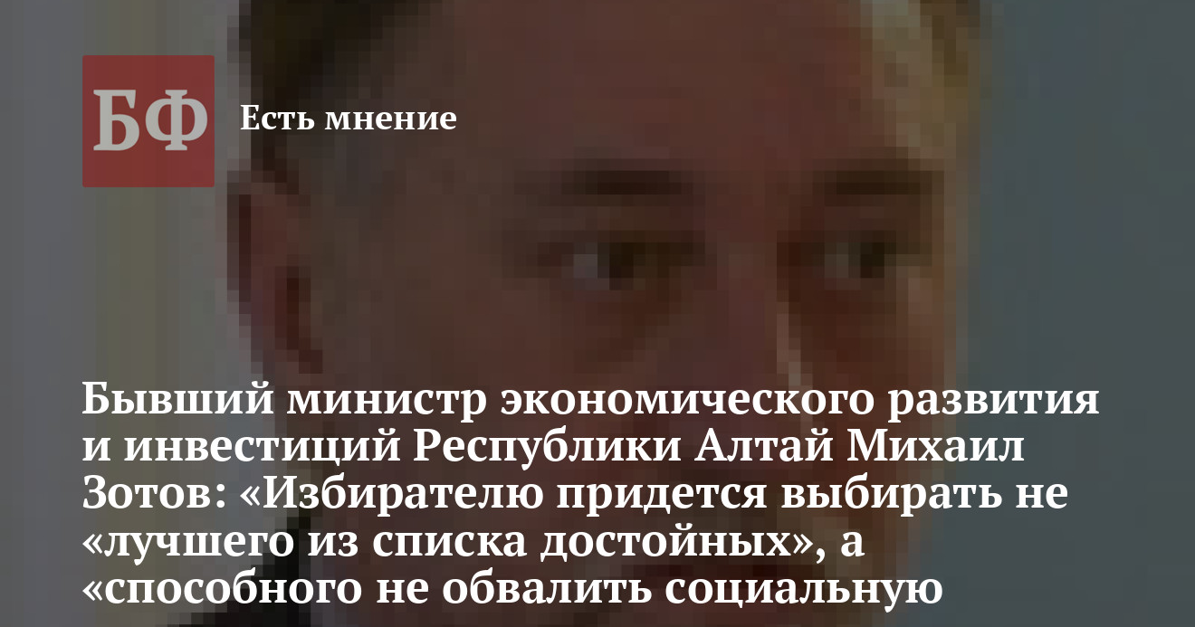 Экс-министр экономического развития и инвестиций Республики Алтай, доктор экономических наук Михаил Зотов дал интервью сайту «Радар», в котором оценил деятельность республиканского правительства за последние годы, раскрыл некоторые механизмы региональной кадровой политики, а также дал оценку четырем действующим претендентам на пост главы РА. Публикуем наиболее любопытные выдержки из данного интервью. Стоит добавить, что г-н Зотов, достаточно демонстративно покинувший правительство республики в 2007 году, зарекомендовал себя как последовательный критик команды Александра Бердникова.