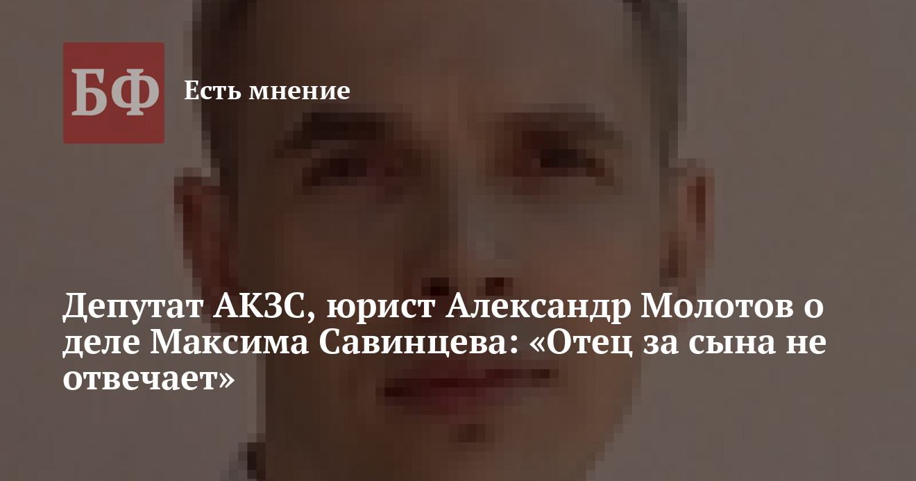 title="Депутат АКЗС, юрист Александр Молотов о деле Максима Савинцева: «Отец за сына не отвечает»"