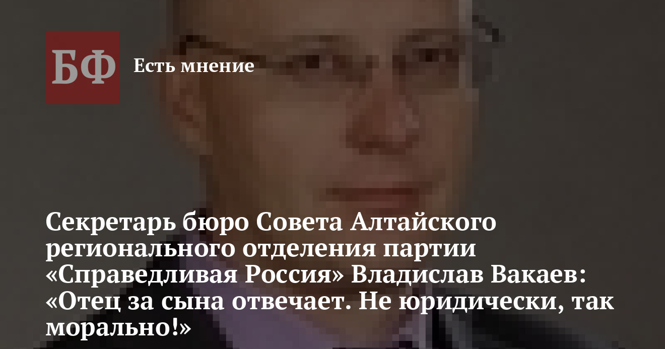 title="Секретарь бюро Совета Алтайского регионального отделения партии «Справедливая Россия» Владислав Вакаев: «Отец за сына отвечает. Не юридически, так морально!»"