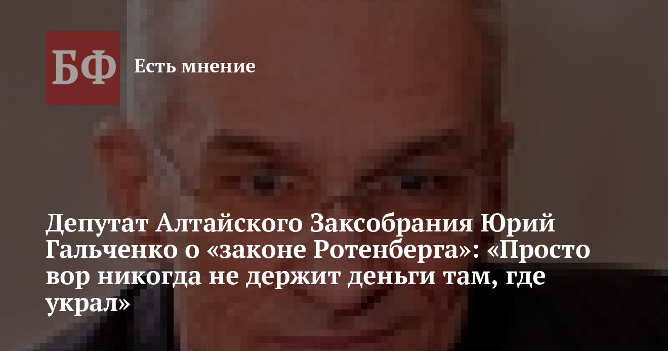 title="Депутат Алтайского Заксобрания Юрий Гальченко о «законе Ротенберга»: «Просто вор никогда не держит деньги там, где украл»"