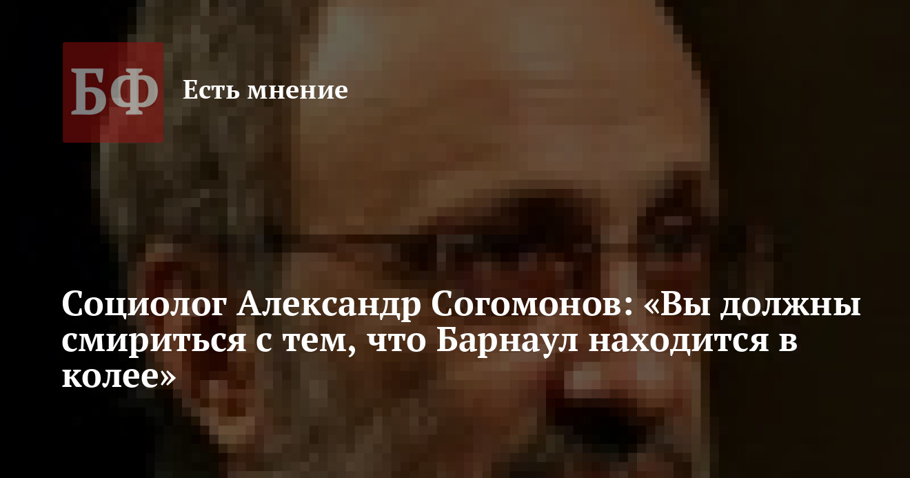 title="Социолог Александр Согомонов: «Вы должны смириться с тем, что Барнаул находится в колее»"