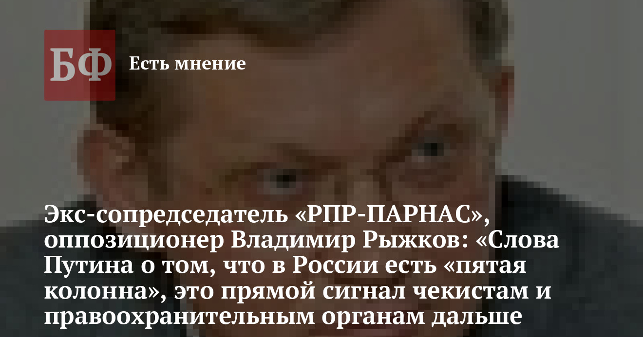 title="Экс-сопредседатель «РПР-ПАРНАС», оппозиционер Владимир Рыжков: «Слова Путина о том, что в России есть „пятая колонна“, это прямой сигнал чекистам и правоохранительным органам дальше прессовать оппозицию, некоммерческие организации и свободную прессу»"
