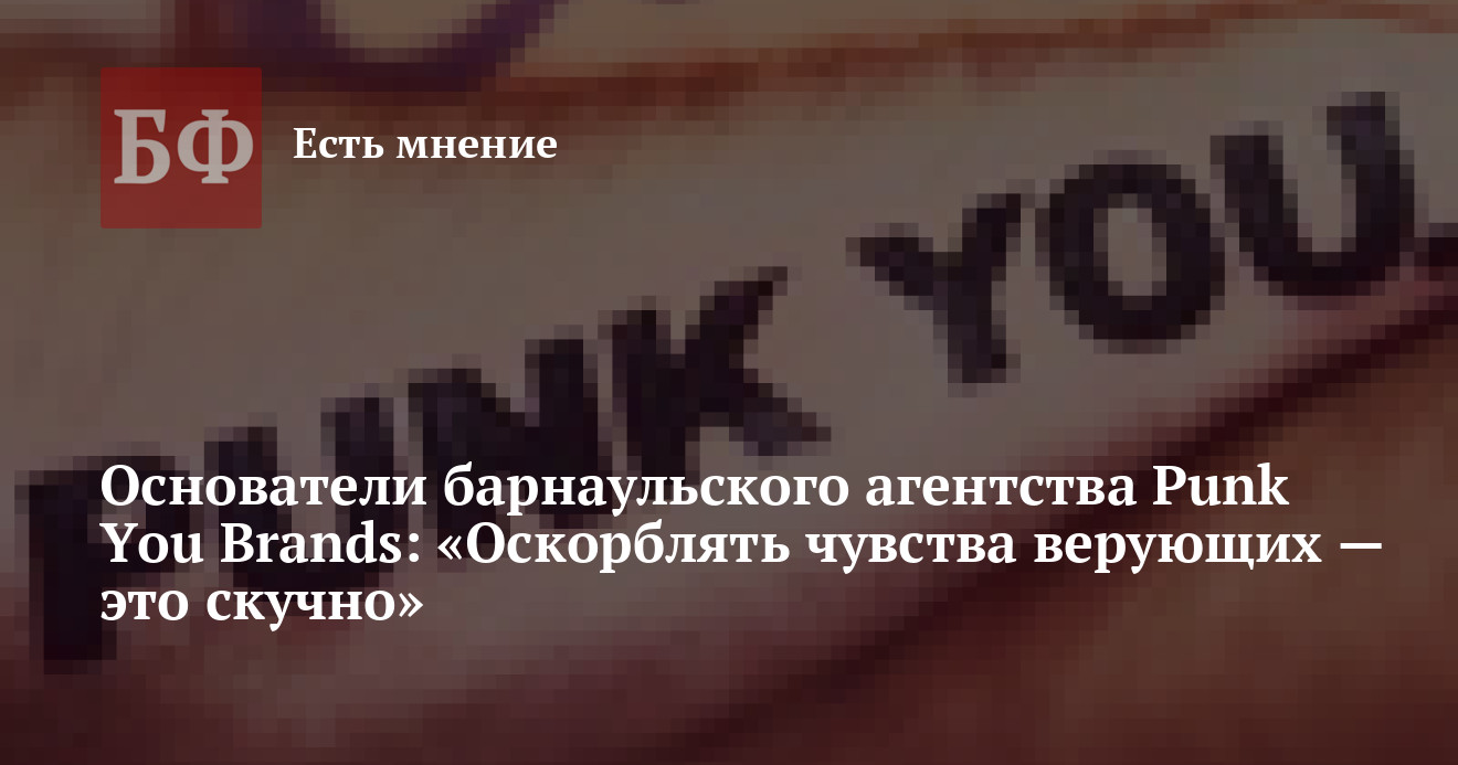 Для барнаульского брендингового агентства Punk You Brands скандал — часть имиджа. Креативный директор Ильдар Шале и арт-директор Данил Снитко создали множество инфоповодов, которые разбирали по косточкам краевые и федеральные СМИ, общественные организации и контролирующие органы. Им всегда удавалось выйти сухими из воды. О своих провокациях и здравом смысле руководители Punk You рассказали в рамках встречи, организованной 26 мая в ИД «Алтапресс».
