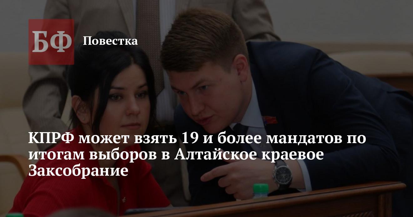 Таким образом, с учетом устойчивого лидерства КПРФ на 11 одномандатных округах, а также результата их списка и подсчетов на основании метода Хэйра — Нимейера, на данный момент коммунисты могут рассчитывать минимум на 19 мандатов в АКЗС, что уже выглядит тревожным для единороссов. Добавим, что ранее лидер КПРФ в Алтайском крае Мария Прусакова заявляла, что они готовы бороться в случае несогласия с итогами выборов. Не исключено, что на спорных округах дело может дойти до судов.