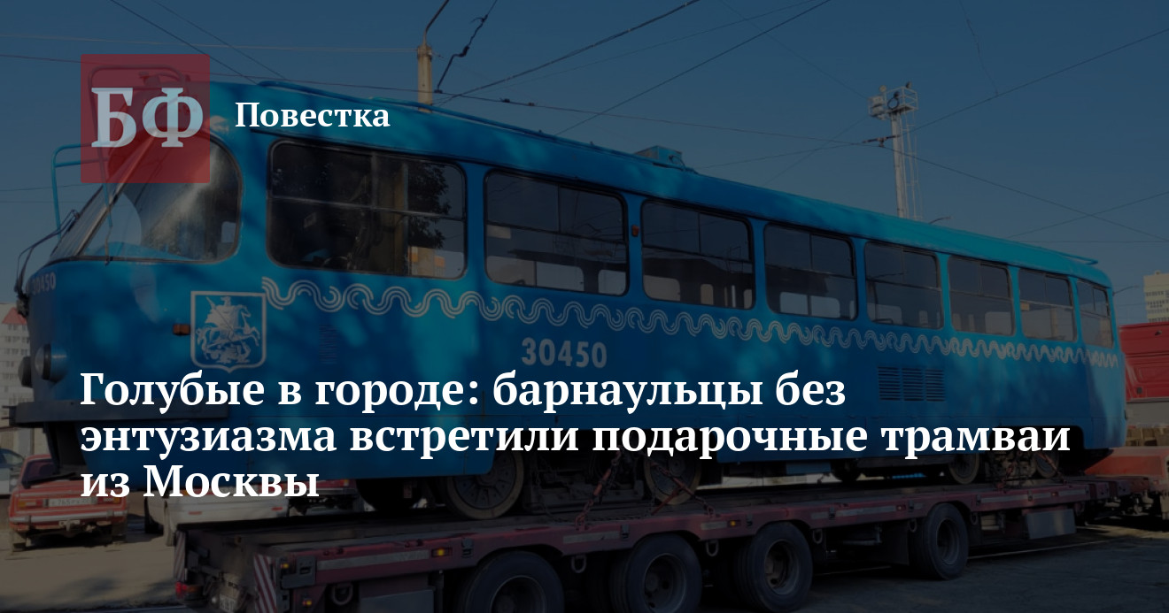 Жители Барнаула заметили на улицах города первые трамвайные вагоны «Мосгортранса», безвозмездно переданные мэром столицы Сергеем Собяниным. Судя по комментариям к фото в сообществе Barnaul 22 «ВКонтакте», горожане ожидали большего от подарка из Москвы.