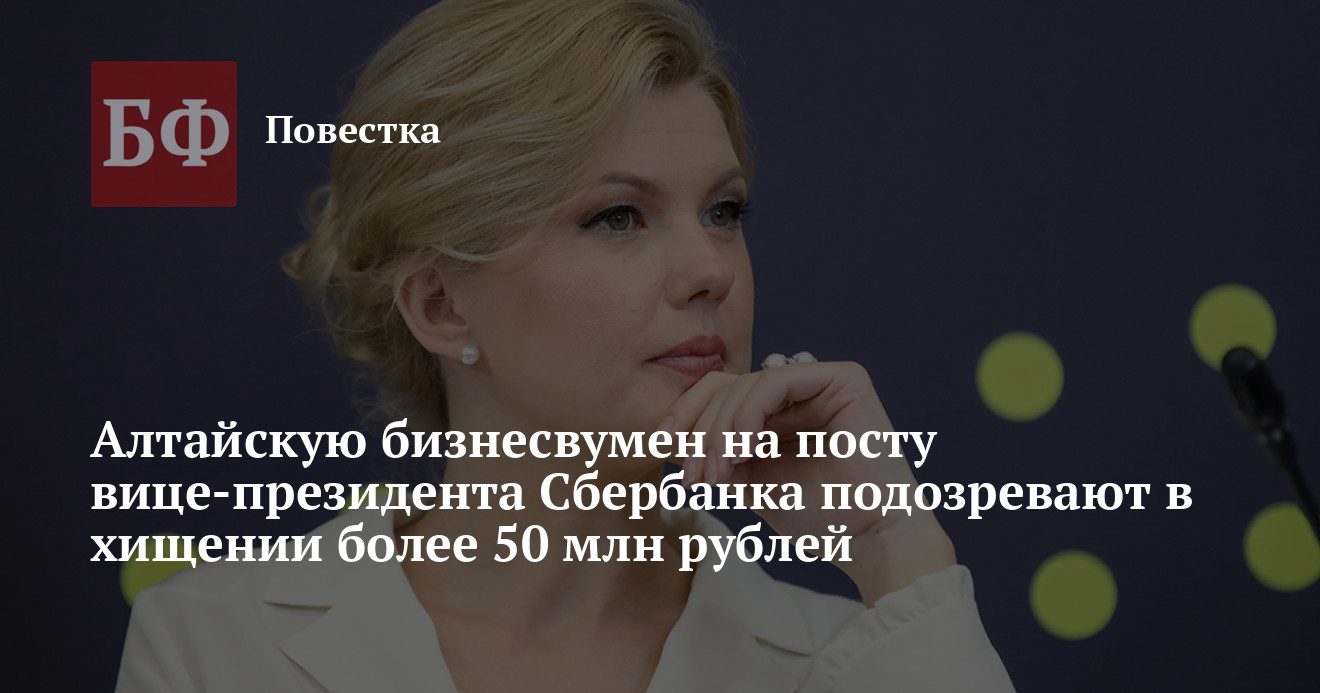 38-летняя уроженка Алтайского края, в прошлом известный предприниматель и экс-замглавы Минпросвещения РФ, Марина Ракова, которая сейчас занимает пост вице-президента Сбербанка, стала фигурантом уголовного дела о мошенничестве. Как сообщает РИА «Новости», ее подозревают в хищении более 50 млн рублей.
