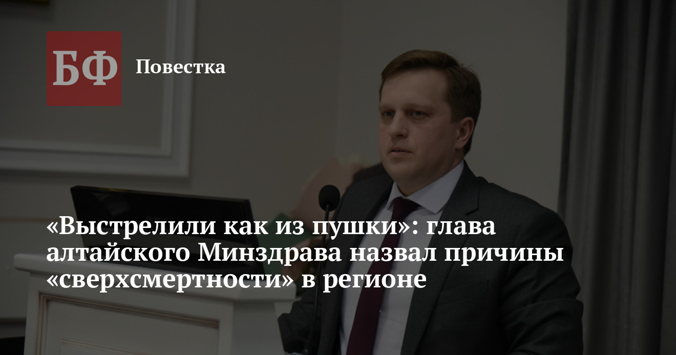 Как сообщил Попов, в силу привлекающих внимание демографических тенденций Алтайский край выглядел для министра здравоохранения РФ Михаила Мурашко двояко, поэтому ситуация потребовала пояснений со стороны краевого Минздрава. «Если сравнивать нас со среднероссийскими показателями смертности к 2019 году, то у нас динамика роста смертности ниже, чем в среднем по стране. Мы не в „передовиках“. А если посмотреть 2020 год, то мы в десятке регионов России с самым большим ростом смертности. Это обусловлено тем, что до сентября включительно, в отличии от других регионов, мы снижали смертность на фоне ковида и не росли», — сообщил министр здравоохранения края.