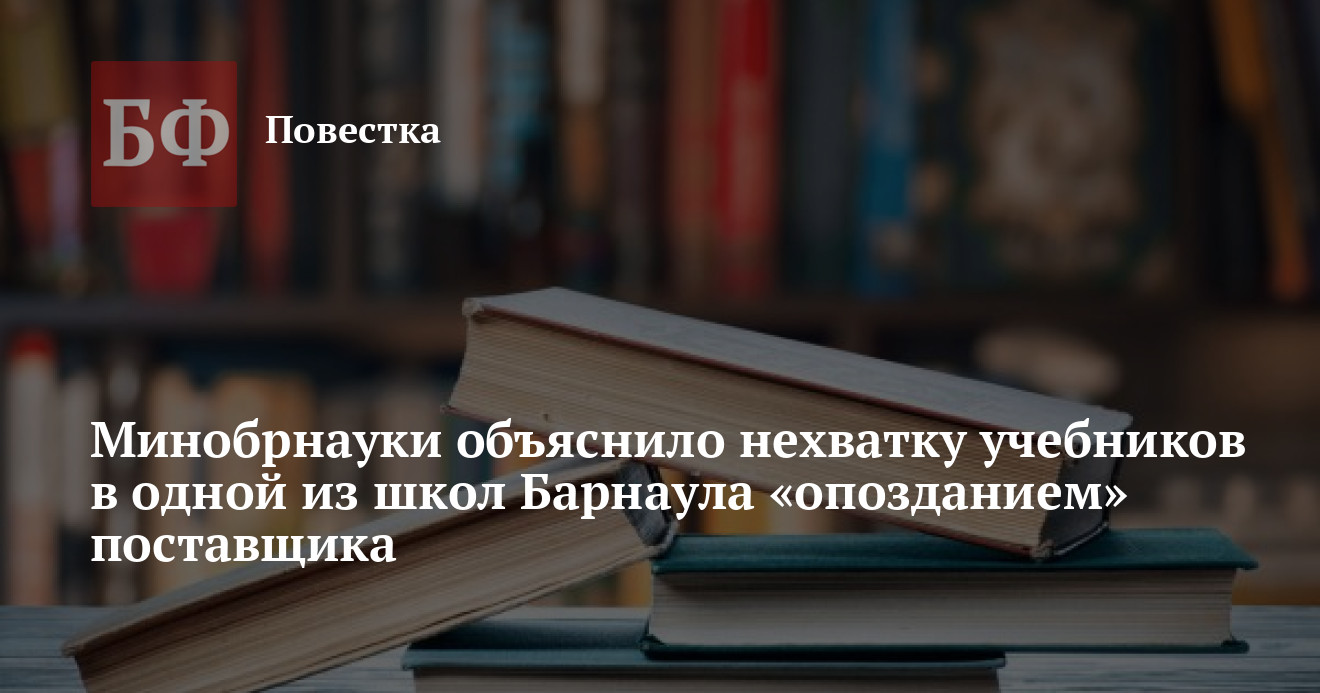 В Минобрнауки Алтайского края по поводу пособий сообщили, что в этом учебном году в школе № 134 число школьников увеличилось на 100 человек по сравнению с прошлым годом. Особенно выросло количество учеников седьмого класса, в связи с чем в параллели их сформировалось четыре. В фонде учреждения книг для семиклассников по упомянутым предметам оказалось недостаточно, а подготовиться к этому не успели.