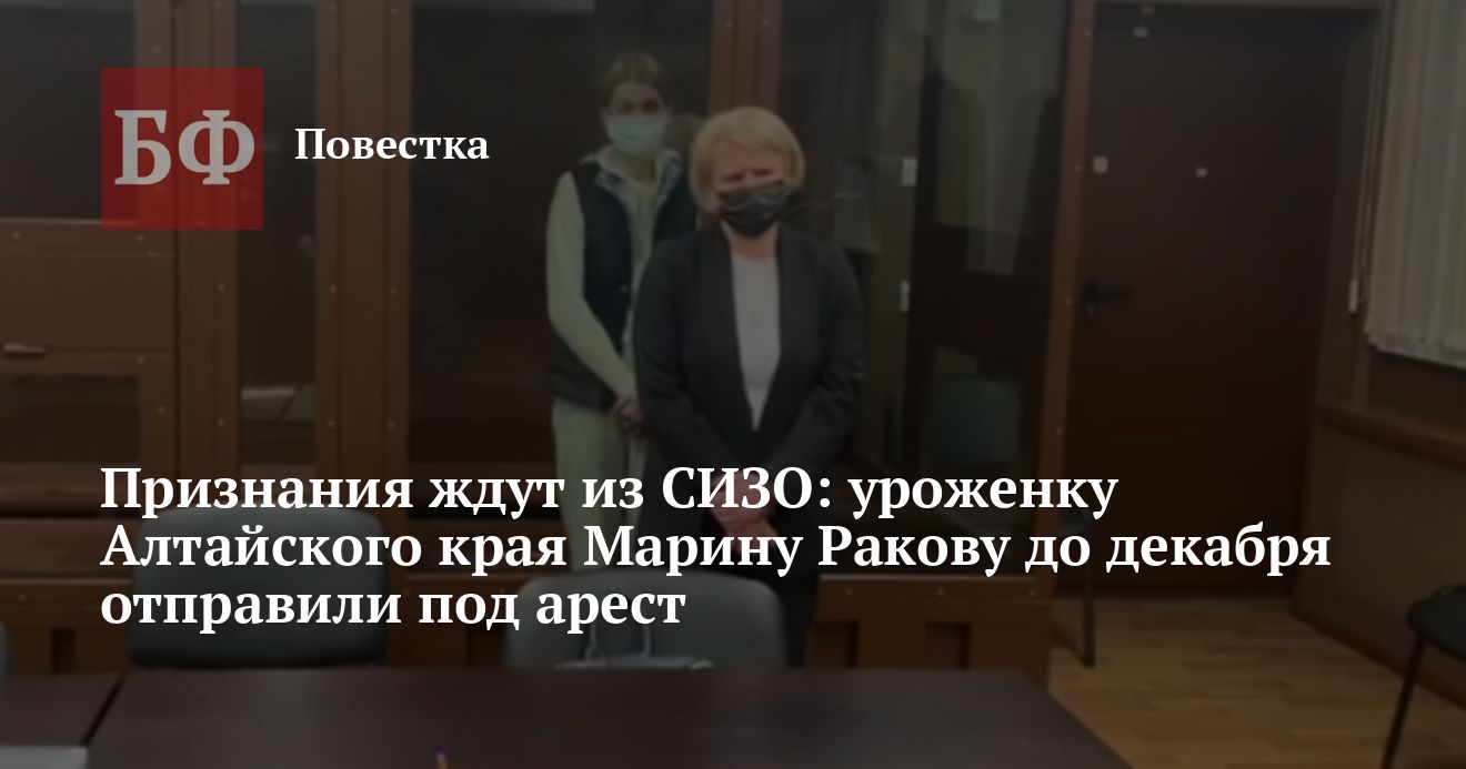 Тверской районный суд Москвы отправил уроженку Алтайского края, экс-министра просвещения РФ Марину Ракову под арест. Видео из зала суда с оглашением постановления опубликовал Mash. Ближайшие два месяца ей предстоит провести за решеткой из-за подозрений в хищении бюджетных средств. Ее адвокат намеревается оспорить этот вердикт.