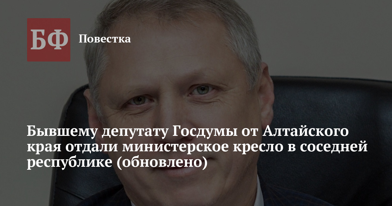 Бывшему депутату Госдумы от Алтайского края отдали министерское кресло в соседней республике<span style= (обновлено)">
