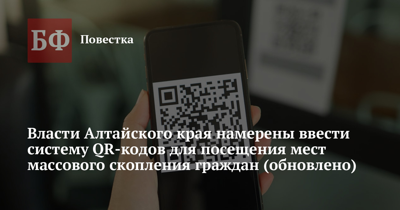 Как сообщили в региональном кабмине, в связи с ростом числа заболевших коронавирусной инфекцией власти Алтайского края планируют ввести QR-протоколирование граждан при входе в крупные торговые центры, учреждения культуры и прочие объекты с массовым пребыванием людей. Отметим, что по практике других регионов такие коды должны быть у тех граждан, кто сделал прививку вторым компонентом вакцины или однокомпонентной вакциной, зарегистрированной в РФ; у тех, кто переболел COVID-19 в течение полугода (есть отметка в ЕМИАС); у кого есть отрицательный результат ПЦР-теста (действует 72 часа, должен быть внесен в ЕМИАС, доступно для иностранных граждан). Новые ограничения не распространяются на лиц младше 18 лет или имеющих медицинский отвод от вакцинации.