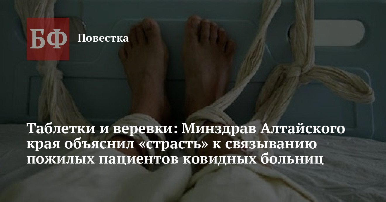Привязывание пациентов к кроватям в медучреждениях Алтайского края, особенно ковидных, является нормальной практикой и необходимо в случаях с психотическим состоянием больных, заявил Минздрав региона в ответе на запрос ИА «Банкфакс». Решение о применении так называемой «мягкой фиксации», как лишение свободы называют в ведомстве, принимает лечащий врач. При этом никакими документами это не регламентируется и министерство не знает, сколько пациентов в крае сейчас пристегнуты к кроватям.