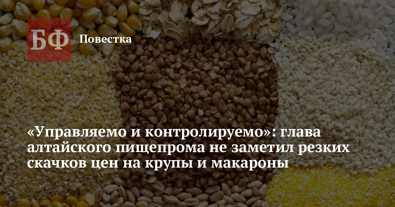 27 октября состоялась онлайн-конференция начальника управления Алтайского края по пищевой, перерабатывающей, фармацевтической промышленности и биотехнологиям Александра Большакова, который ответил на волнующие журналистов вопросы о росте цен на ряд видов продукции АПК. По словам чиновника, никаких резких скачков стоимости макарон и круп, о которых в последнее время пишут региональные и федеральные СМИ, в правительстве края не замечают. Большаков заявил, что данная информация преувеличена. Он не стал отрицать, что некоторое повышение цен на отдельные товары действительно наблюдалось, однако ситуация уже стабилизируется, и власти держат ее под контролем. Впрочем, цифры статистики о том, как менялась цена на пресловутую гречку в последние годы, говорят об обратном.