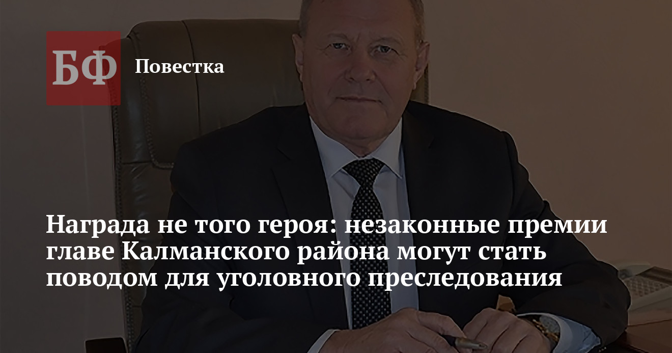 Эти факты вскрылись, когда прокуратура провела проверку по жалобе ряда депутатов представительного органа Калманского района. В ее ходе выяснилось, что Бунет сам распорядился выплатить себе премии, в том числе за добросовестное выполнение должностных обязанностей, по итогам 2020 года и за счет экономии фонда оплаты труда. При этом такие вопросы находятся в компетенции райсобрания, но прокурор не нашел каких-либо подтверждений тому, что оно принимало такие решения. Более того, случаи, когда должностное лицо премирует само себя, являются проявлением личной заинтересованности, следует из Федерального закона «О противодействии коррупции». Но глава не уведомлял об этом представительный орган, что, как посчитали в ведомстве, свидетельствует о нарушении Бунетом закона.
