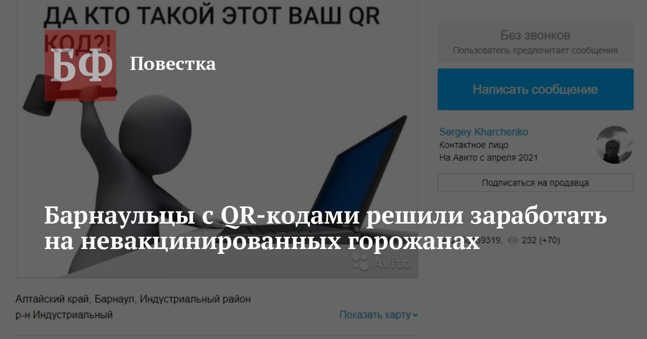 Насколько востребованы эти услуги в Барнауле, неизвестно. По телефону, размещенному на одной из страниц, девушка в беседе с корреспондентом «Банкфакса» рассказала, что опубликовала объявление в шутку и на самом деле не планирует зарабатывать деньги с помощью своего QR-кода. Другие авторы не звонок не ответили. Тем не менее, в других регионах страны такие вакцинированные курьеры также набирают популярность.