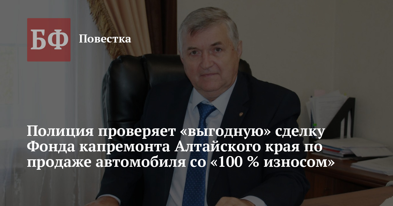 По данным издания, на балансе РО Алтайского края «Фонд капитального ремонта МКД» стоял автомобиль Toyota Corolla 2014 года выпуска с пробегом около 200 тысяч км. В организации решили продать машину, а на вырученные деньги купить новую. Оценщик, изучив ПТС и диагностический лист, вывел рыночную стоимость автомобиля в размере 361 тысячи рублей, поскольку износ транспортного средства, по его мнению, составил 70%, и его состояние было условно пригодным. По указанной выше цене машину продали некоей компании «Постскриптум», затем — частному лицу, а в конечном итоге она попала в руки к женщине, которая якобы приходится родственницей руководителю «Фонда капитального ремонта МКД» Александру Пономареву.