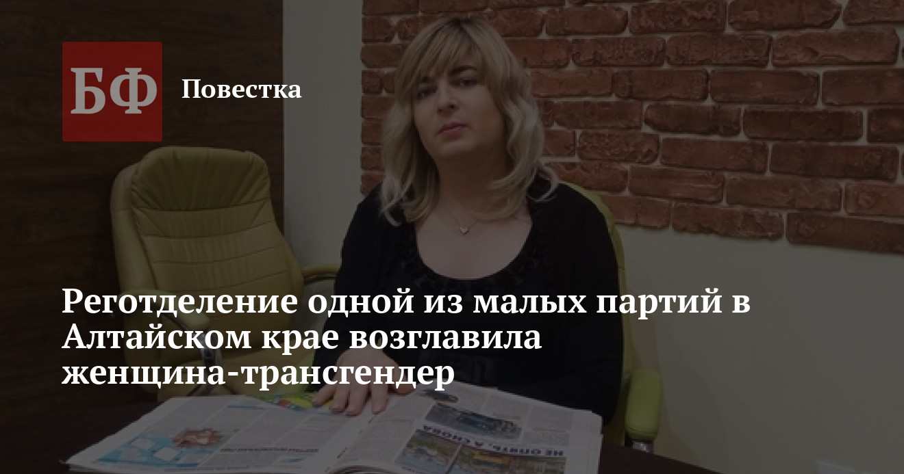 В Алтайском крае намечается трансформация регионального отделения партии «Гражданская инициатива» (ГИ). Как пишет «Московский комсомолец на Алтае», местную ячейку возглавила Юлия Алешина, ранее официально сменившая пол с мужского на женский. В интервью изданию первая в регионе политик-трансгендер такого уровня рассказала, что ГИ может стать третьей политической силой на алтайской трибуне.