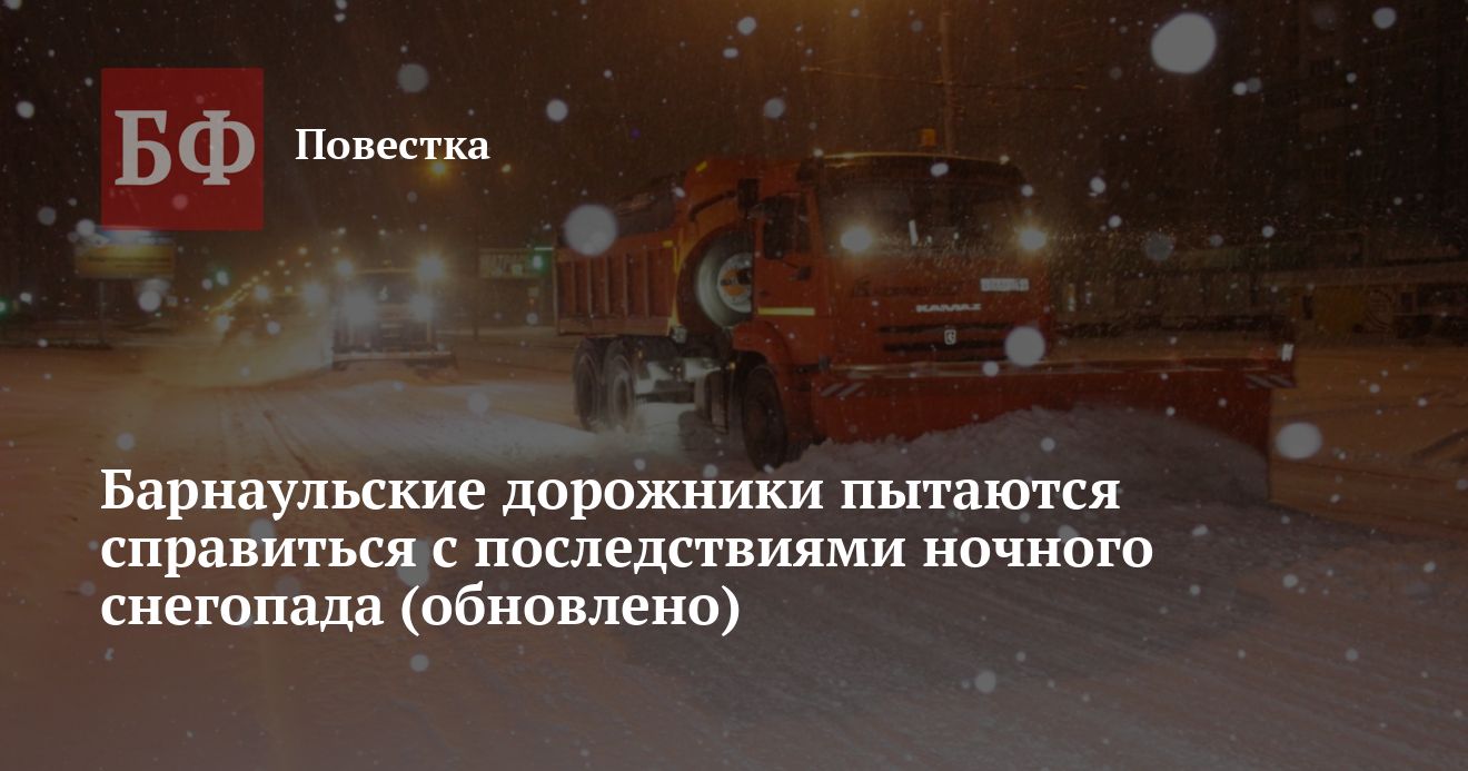 Судя по данным синоптиков, снежный фронт, прошедший через Алтайский край с северо-запада на юго-восток, затронул Барнаул лишь отчасти. Тем не менее, как и ожидалось, в городе выпали обильные осадки. К работе в таких условиях дорожники из МБУ «Автодорстрой» были готовы, подчеркивала мэрия города. На ночное дежурство в ночь на 18 ноября заступило 107 единиц техники. На всех дорожных участках назначили дежурных. Отмечалось, что с началом снегопада муниципальное предприятие начнет обрабатывать дороги песком с солью. На посыпку и промет дорог было выделено 27 машин. На тротуары направили 12 тракторов с щетками. В качестве основной задачи стояла очистка основных магистралей для проезда общественного транспорта и автомобилей всех служб. Предполагается, что вывоз снега начнется в дневную смену.
