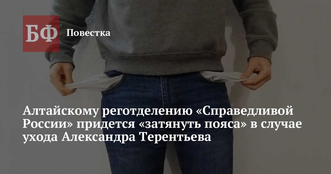 Анонсированный депутатом Госдумы Александром Терентьевым уход с должности главы алтайского реготделения «Справедливой России — За правду» может произойти в ближайшее время, считают источники ИА «Банкфакс». В такой ситуации собеседники редакции представляют будущее краевой ячейки партии туманным, поскольку он также предположительно намерен прекратить или сократить финансирование, которое во многом и позволяло краевым эсерам долгие годы держаться на плаву и показывать результат на выборах. В следующем году в в Алтайском крае пройдет большая муниципальная избирательная кампания, которая без серьезных вложений может оказаться провальной. Возможно, ситуацию сможет исправить новое руководство, предполагаемый состав которого озвучили инсайдеры.