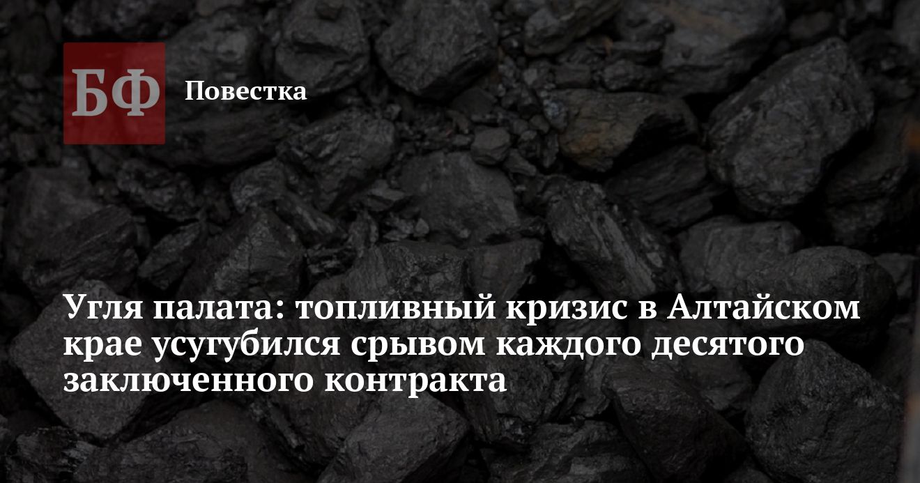 В министерстве рассказали, что на отопительный период 2021—2022 годов алтайским предприятиям малой энергетики необходимо 642 тысячи тонн топлива. По данным на 25 ноября, контракты были заключены на поставку 581 тысячи тонн, что составляет 90% от потребности. На сегодня запасы на угольных площадках и в котельных составляют 131,1 тысяч тонн — это 100,2% от нормативного запаса. В то же время из-за роста стоимости угля со стороны поставщиков происходит расторжение контрактов, поскольку организации не могут исполнять свои обязательства. На текущий момент отказы имеются по 11% договоров от общего объема. Было сорвано сделок на 60 тысяч тонн. При этом неизвестно, возникнут ли подобные ситуации в дальнейшем.